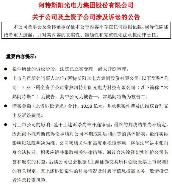 对于上述指控,阿特斯昨日晚间发布公告回应。