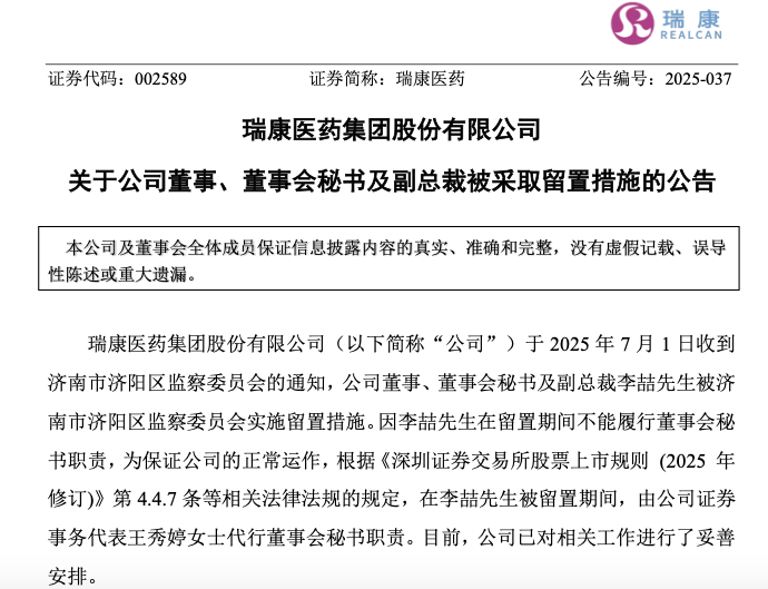 10倍溢价收购零营收公司!瑞康医药董事、董秘及副总裁被留置