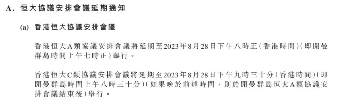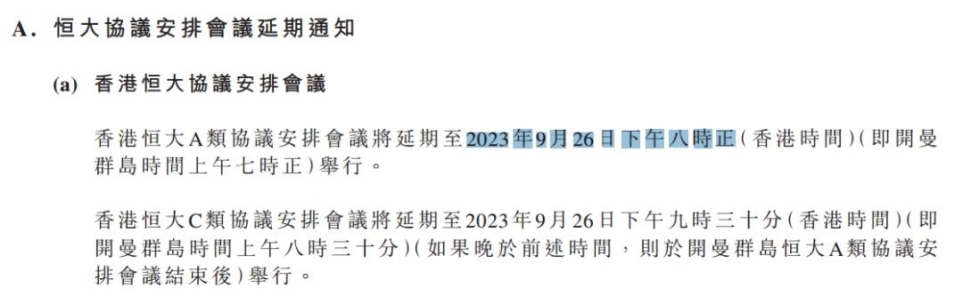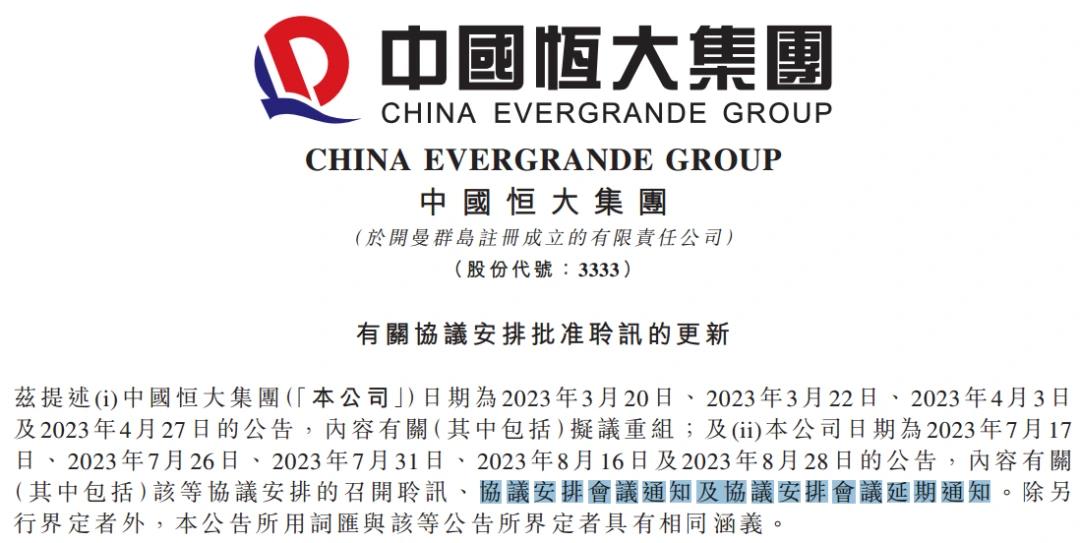 8月28日,中国恒大公告称,恒大协议安排会议的举办时间,延期至9月26日。