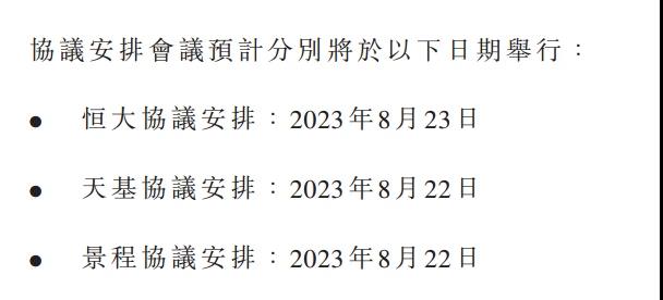 7月26日,中国恒大公告称,恒大协议安排8月23日、天基协议安排8月22日、景程协议安排8月22日。