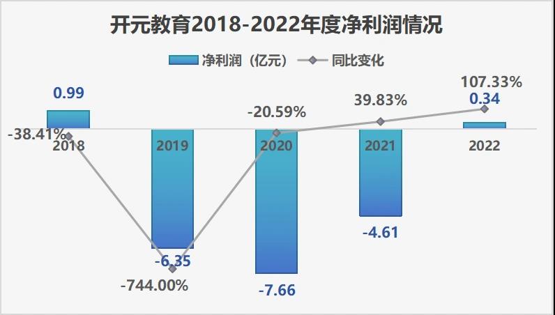 事实上,自2019年开始,开元教育便持续亏损,连续三年分别亏损6.35亿元、7.66亿元和4.61亿元,累计亏损超18亿元。而到2022年,开元教育终于脱离了亏损的苦海。