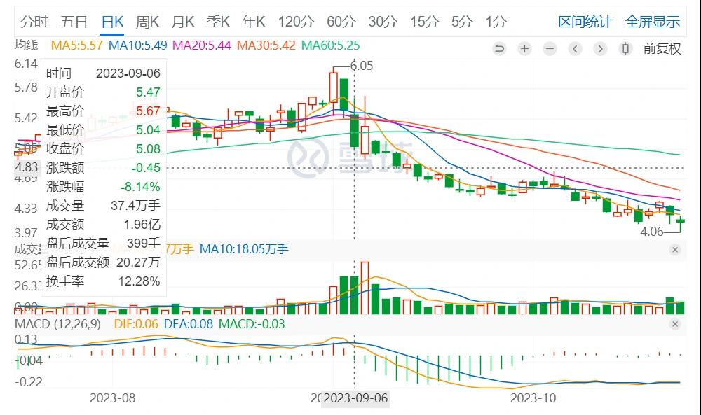 业绩的低迷和发展的不确定性叠加,让终于“摘帽”的开元教育股价出现大幅下滑。9月5日,开元教育低开低走,收跌7.37%;9月6日,再跌8.14%。随后,开元教育股价持续下探,目前已跌至4.06元,区间降幅达29.98%,也刷新了今年5月以来的新低。