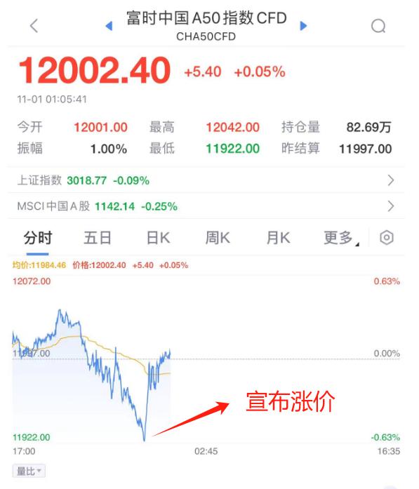 而茅台宣布涨价,资本市场立马剧烈反应,A50突然直线拉升翻红,泰勒直接加班!有网友戏称:真正的救市——茅台提价!市场声音称,这可能是触发消费股上涨的一个引子
