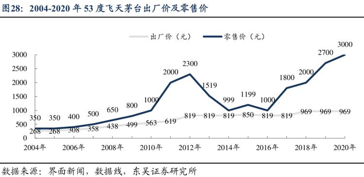飞天茅台出厂价及零售价近年来走势图