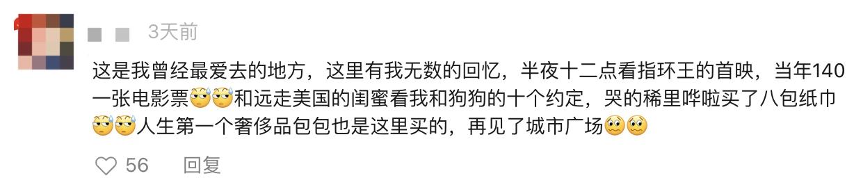 “有太多回忆在这里了,跨年夜满天的气球。”“是有点回忆,第一次看电影就在新南国影城……”“2002年出生在这里,小学的时候每周五晚上都要去新城市广场玩。”许多网友在社交媒体平台表达了自己对于新城市广场的特殊感情。