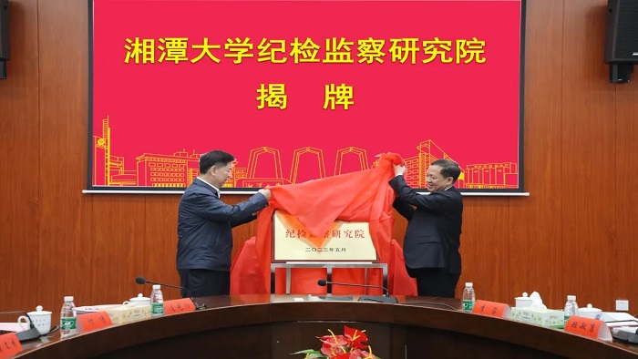 于5月10日上午正式成立。全国人大常委会委员、监察与司法委员会副主任委员邱学强,湘潭大学党委书记刘起军为纪检监察研究院揭牌。中央纪委驻最高人民检察院原纪检组组长莫文秀,第十三届全国人大监察与司法委员会委员、湘潭大学法学院名誉院长谢勇,中国纪检监察学院特派代表付倩,湖南省纪委监委一级巡视员罗水平,湘潭大学党委副书记廖永安、纪委书记董康明等出席揭牌仪式。