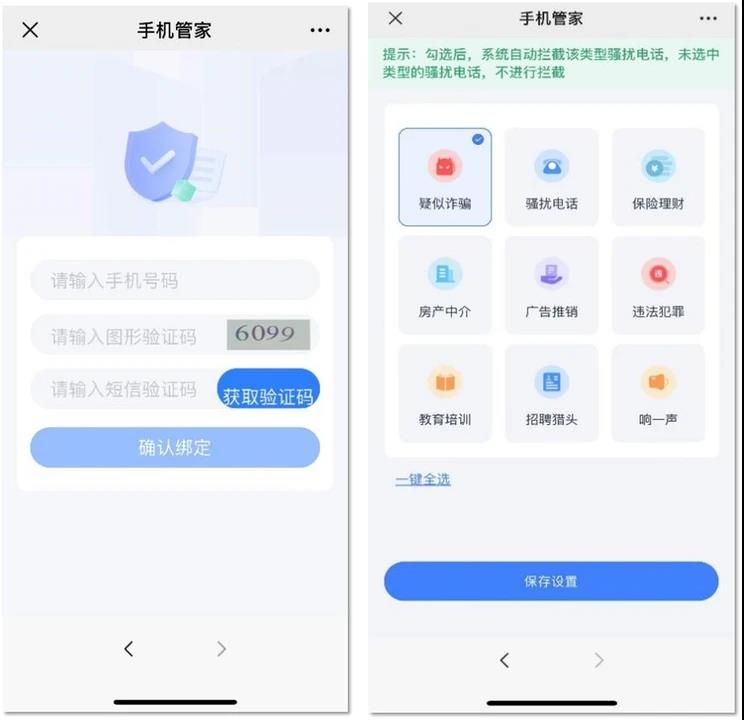 在工业和信息化部信息通信管理局指导下,由中国信息通信研究院产业与规划研究所和三家电信运营商于2019年10月面向全国用户推出了“骚扰电话拒接”服务,用户可免费开通此项防骚扰服务。对于各行业企业通过语音呼叫平台拨打的商业性电话,用户可依据个人意愿登记不愿接听的类别,如贷款理财、保险推销、股票证券、房产中介、教育培训等。对于个人手机或家庭固话拨打的电话,用户可开通个人拒接名单功能,登记不愿接听的号码。电信运营商根据用户意愿提供必要的技术防护,保障用户免受骚扰。经过近5年持续的迭代升级,“骚扰电话拒接”服务更贴合用户的个性化需求,丰富了智能接听、来电验证、拦截通知提醒等功能,全面提升用户服务体验。