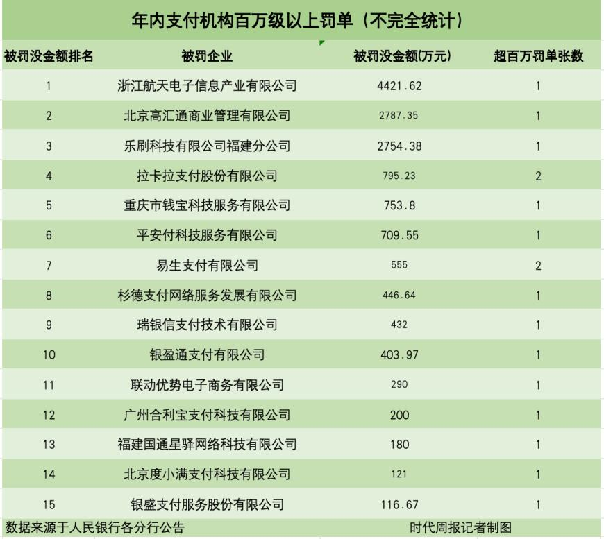 今年以来,支付行业巨额罚单频现,目前已出现3张千万级罚单。