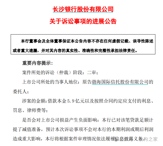 近期,长沙银行(601577.SH)发布关于诉讼事项的进展公告。