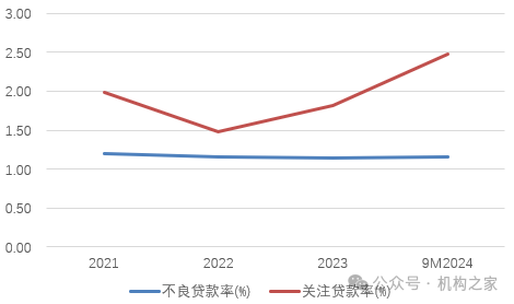 资产质量方面,尽管长沙银行整体不良率保持稳定,截止三季度不良率为1.16%,环比持平。不过,其关注类贷款比率却在持续走高,到三季度该数据为2.48%,环比整整提升22BP,较年初提升66BP。从过往几年来看,其关注率从2022年便开始走高,体现其潜在的坏账风险加大。