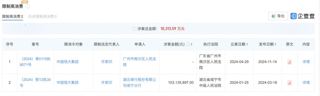 根据该命令,由于中国恒大未能根据广州法院发出的执行通知书履行相关给付义务,广州法院对中国恒大及许家印采取限制消费措施,限制其在高消费领域的非生活或工作必需消费行为。