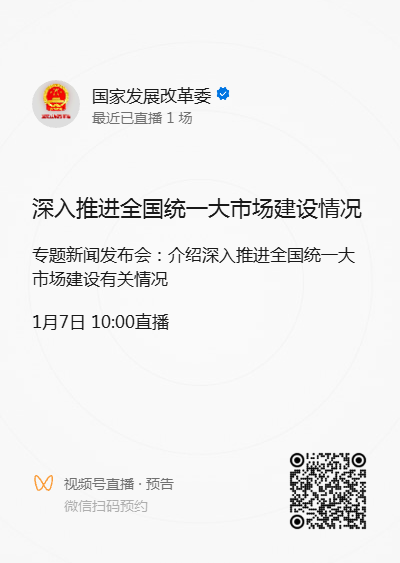 1月7号国家发展改革委召开新闻发布会,介绍深入推进全国统一大市场建设有关情况和《指引》有关内容,并回答大家关心的问题。