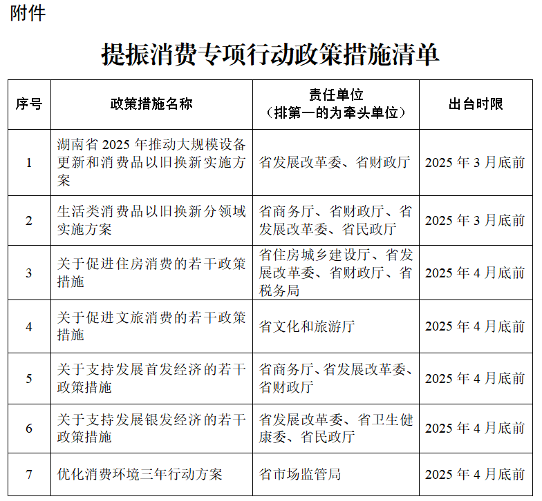 (十)营造消费氛围专项行动。严格落实带薪年休假制度,鼓励带薪年休假与小长假连休、弹性错峰休假,依法保障劳动者休息休假权益,保障居民闲暇时间。聚焦各类节假日,鼓励以省市县三级联动、政企银联合、商旅文融合、线上线下协同等多种方式,持续开展“惠购三湘”“老字号嘉年华”“国潮非遗市集”“湖湘有礼”“网上年货节”“双品网购节”等覆盖全省的促销活动和便民生活节。高质量办好中央广播电视总台“国潮城市”长沙馆启动暨夜经济活力指数发布系列活动、2025福布斯中国新零售产业创新与投融资系列活动、视听中国马栏山微短剧之夜,提升中非经贸博览会、湖南内外贸一体化融合发展博览会、中国中部(湖南)农业博览会、长沙工程机械展、通用航空博览会等会展市场化、专业化、国际化水平。整合政企银资源加大消费券发放力度,对失业人群、灵活就业人群、中低收入人群、二孩以上家庭等特殊群体给予重点倾斜。(省商务厅、省委组织部、省人力资源社会保障厅、省农业农村厅、省财政厅、省广电局等按职责分工负责)