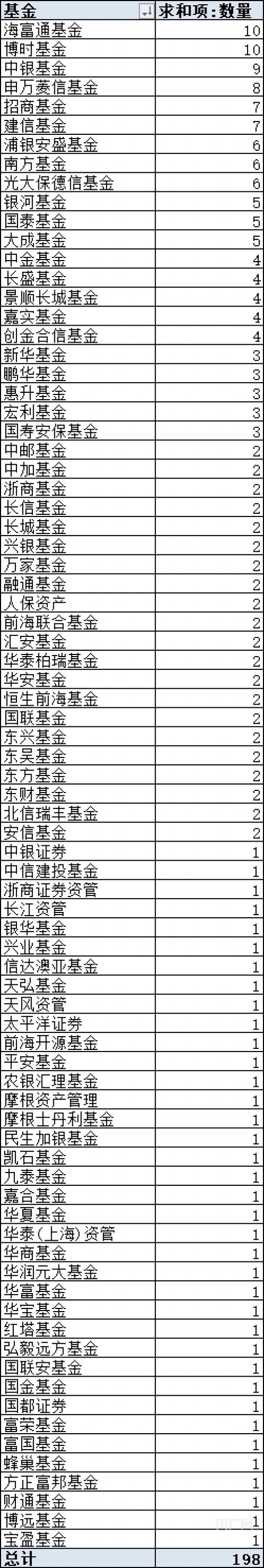 从基金管理人角度来看,海富通基金管理有限公司和博时基金管理有限公司清盘的基金数量最多,均为10只;中银国际证券股份有限公司、中信建投基金管理有限公司等37家基金管理人今年清盘基金数量为1只。总体来看,今年平均每家基金管理人清盘2.475只基金。