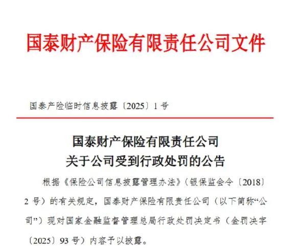 6月6日消息,国泰财产保险有限责任公司发布公告,正式披露了国家金融监督管理总局对其下发的行政处罚决定书内容,此次处罚在保险行业引发关注。