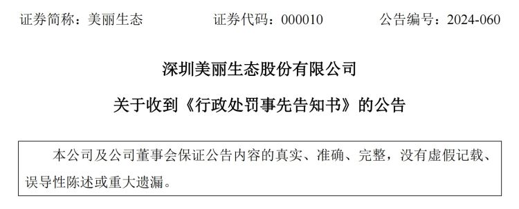 美丽生态(000010)8月7日晚间公告,近日,公司及相关当事人收到深圳证监局下发的《行政处罚事先告知书》。