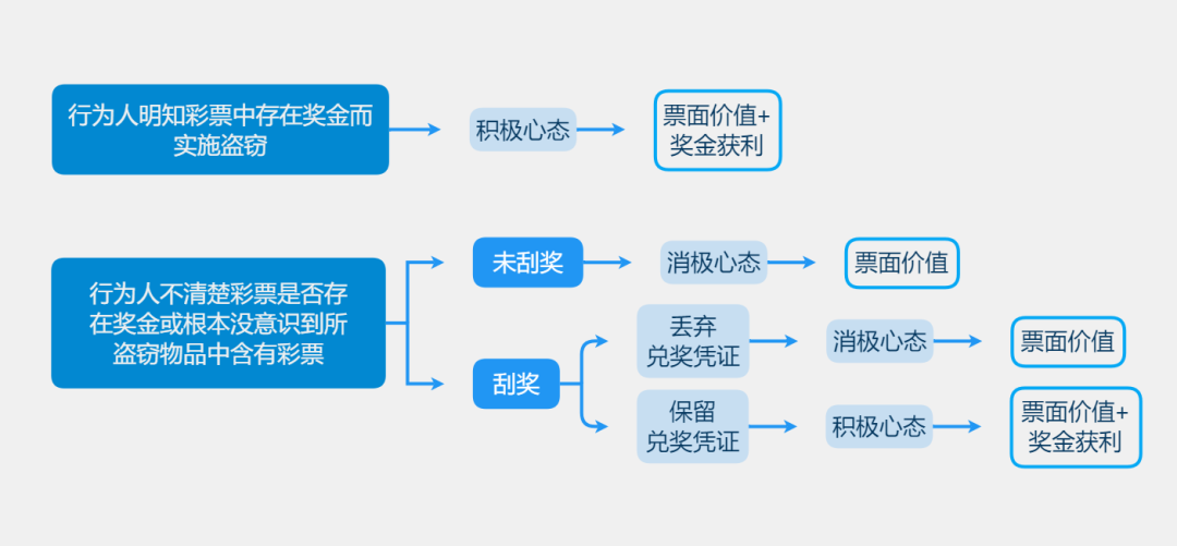 第二,行为人不清楚彩票是否存在奖金或者根本没有意识到所盗窃的物品中含有彩票的情形,依据行为人对奖金获利这部分金额的不同主观心态,应区分具体情形对待: