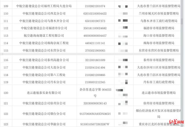▲中国铁路工程集团有限公司的一家三级公司下,就有中航空港建设总公司各地分公司共32家假冒国企