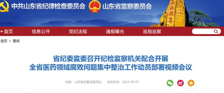 据山东省纪委监委网站消息,8月7日,山东省纪委监委召开纪检监察机关配合开展全省医药领域腐败问题集中整治工作动员部署视频会议。