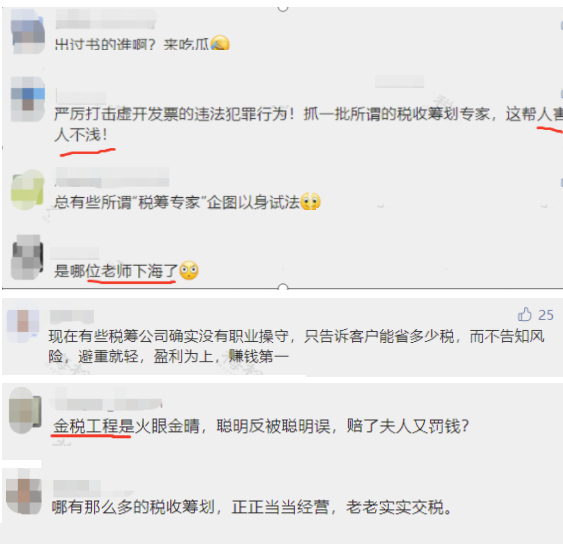 针对“所谓税筹专家”筹划避税,网友评价亮了: