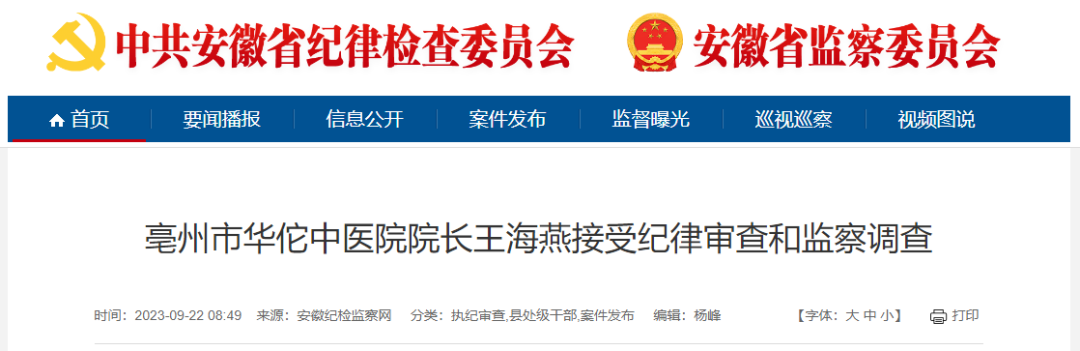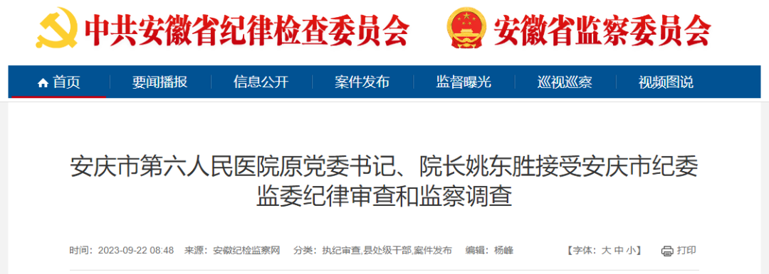 近日,安徽省纪委监察网接连更新三则消息,又有三位医院院长被通报!