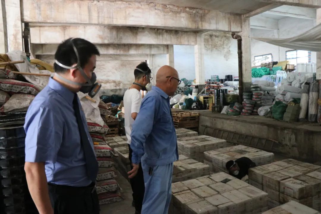检察官前往该社区走访调查,附近居民抱怨道:“就算把窗户关紧,半夜还是会被那股味道熏醒。”而穿过某居民小区的内部道路,在一处农药堆放点百米开外的地方,即使戴上防毒面具,发酸、刺鼻的异味仍扑面而来。还未走进该堆放点,检察官便透过窗户看到里面堆放着大量的农药,有的包装盒因为年代久远早已腐坏,但依稀能看清纸盒上写着甲胺磷、杀虫双等字样。除了这里,还有两处农药堆放点。