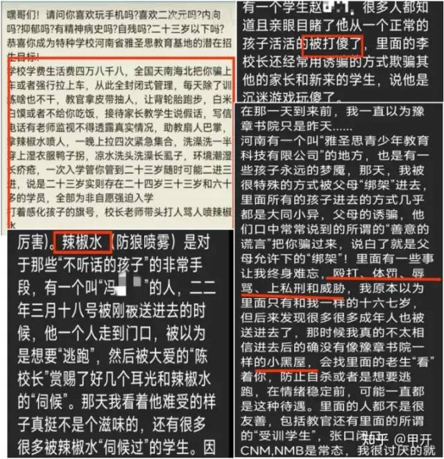 此前1月,多平台曝出位于郑州中牟的河南省雅圣思素质教育基地,打着素质教育、感化孩子的旗号,打骂体罚戒网瘾学生。